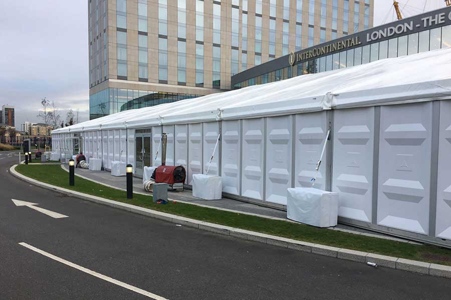The main structure comprised a 20m x 45m Premium Structure with ABS hard walls and curved roof, with an additional 5m x 5m entrance marquee.