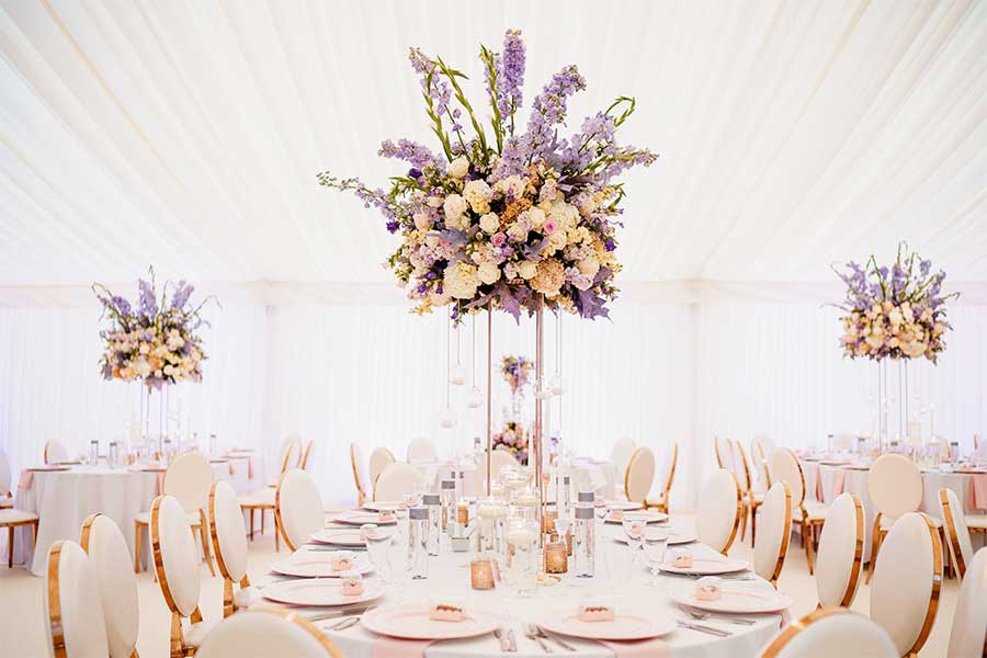 A floral canopy was the centrepiece of this stunningly decorated marquee.