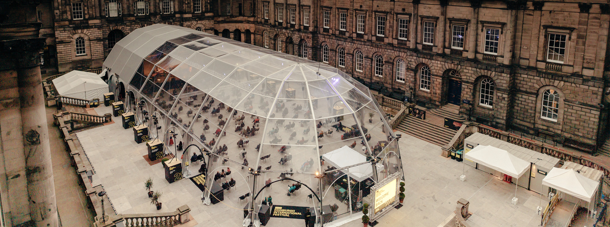 Back in August last year we built a number of very large Igloo marquee structures at the Edinburgh International Festival. Despite the Covid restrictions on each site, it was a fantastic event and a huge success. However, there was one structure which presented an interesting challenge for our project managers and rigging teams.