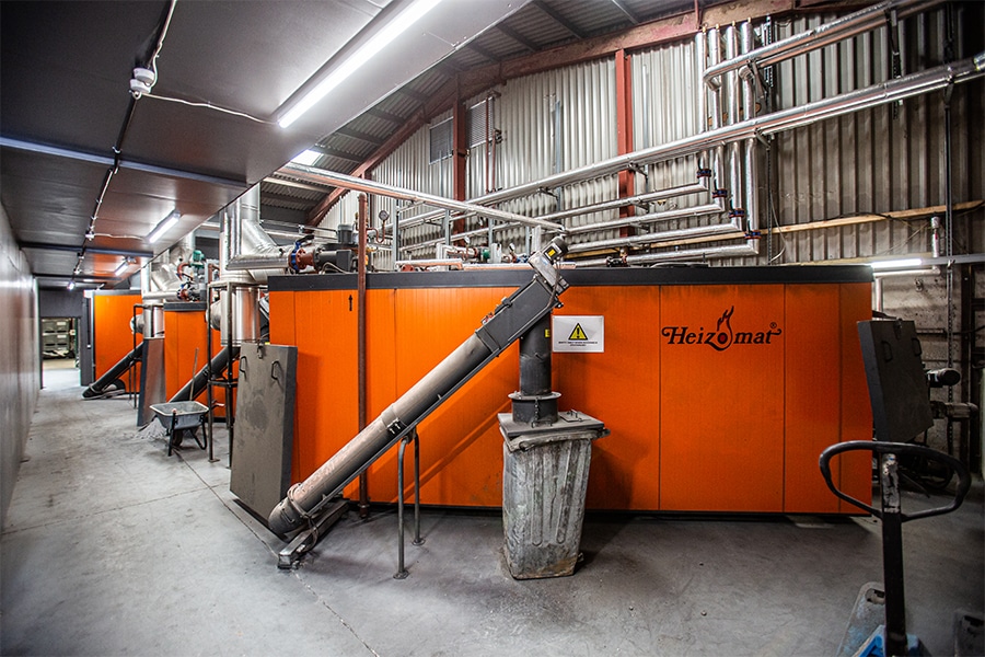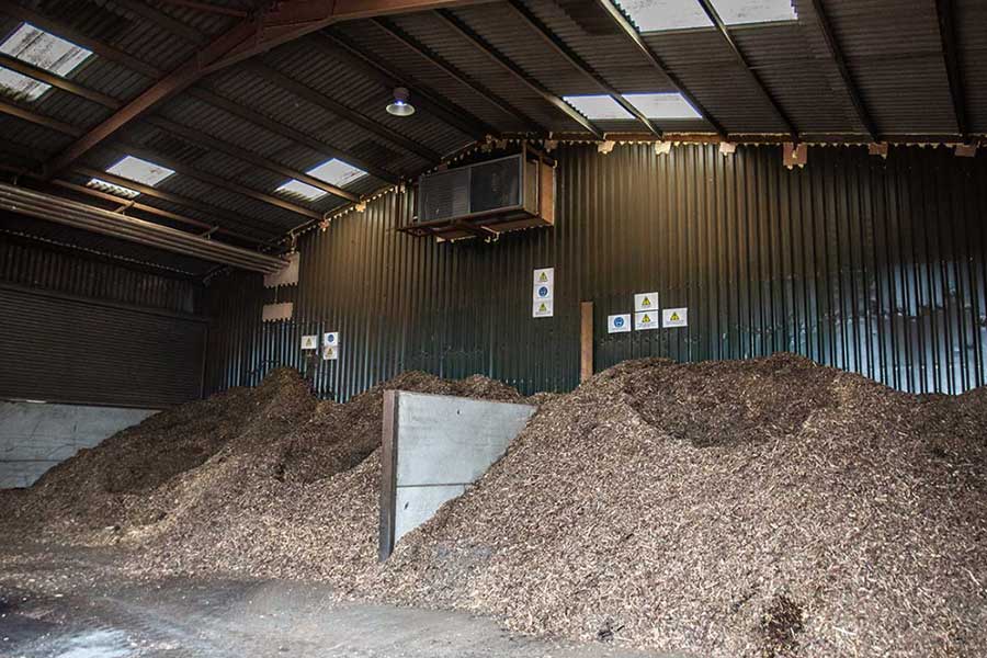 Our business is driven by biomass. The heating of our offices and warehouses, our woodchip drying floor, and hot water throughout the year to clean vehicles, PVC and marquee linings, biomass provides the energy for it all.