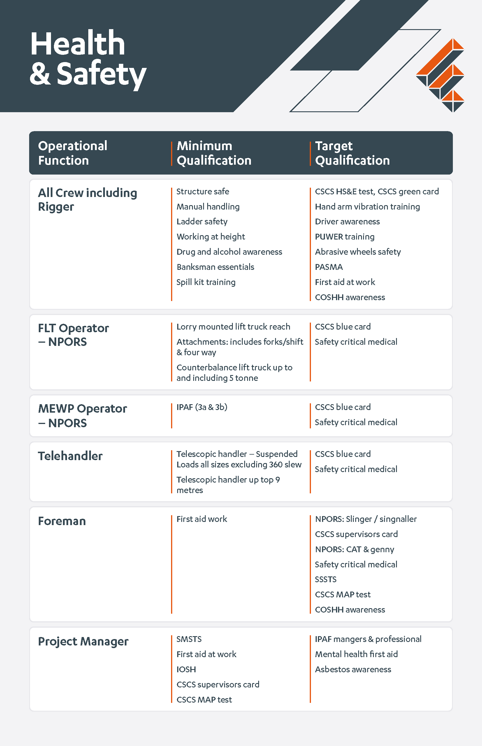 Our comprehensive training matrix ensures that all our personnel from Senior Management through to office staff and  marquee riggers receive the very best training available.