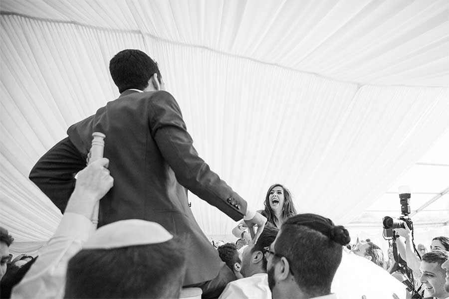 With an entrance framed by a 6m x 6m pagoda, the 15m x 33m luxury marquee with ivory pleated linings and swags containing the Chuppah, a stage for the 10 piece band and choir, guest seating and bar area.