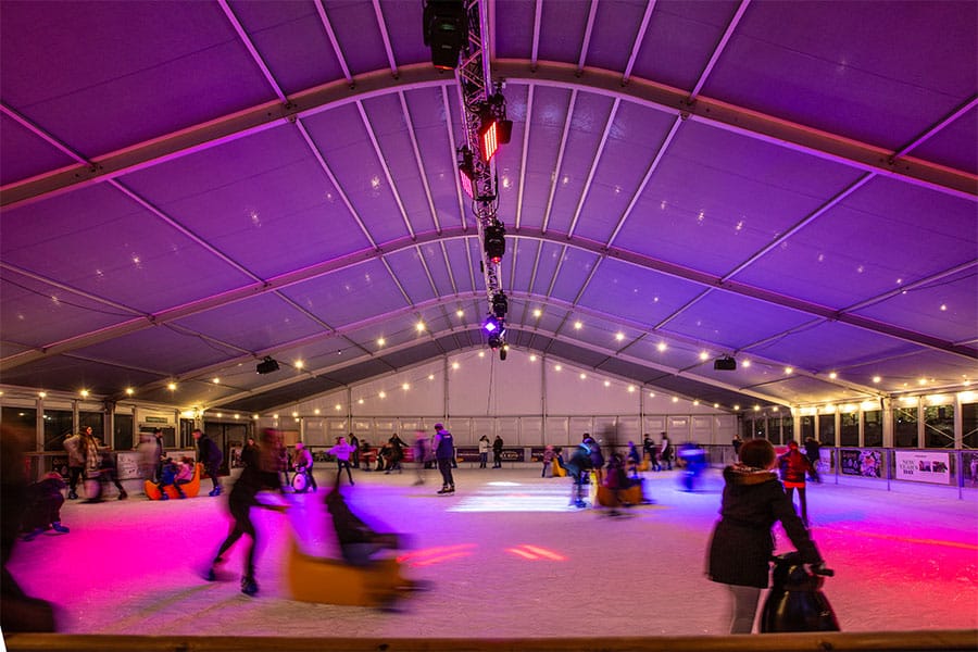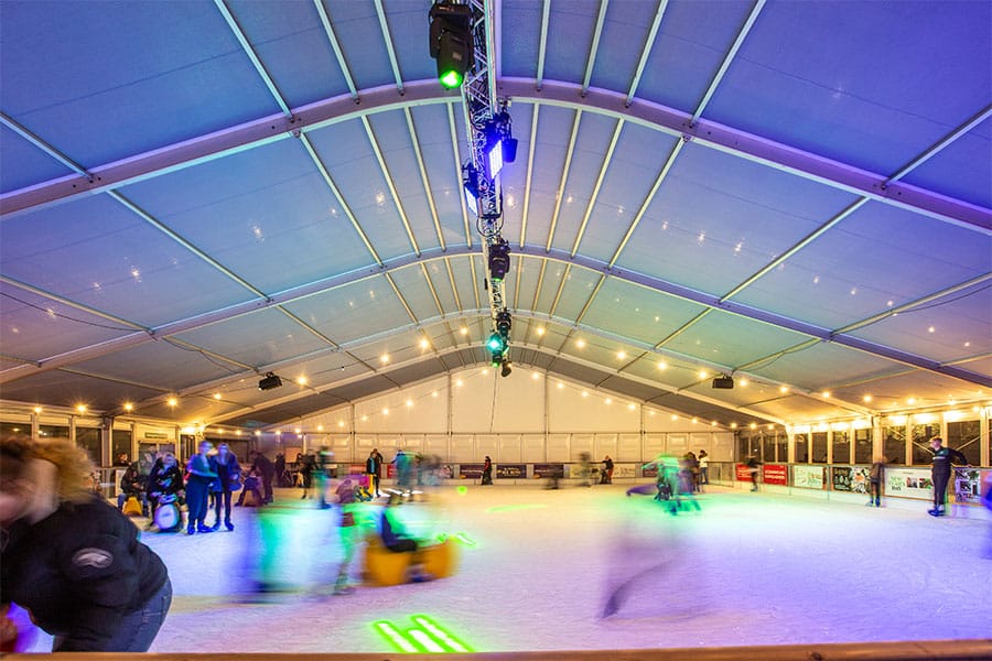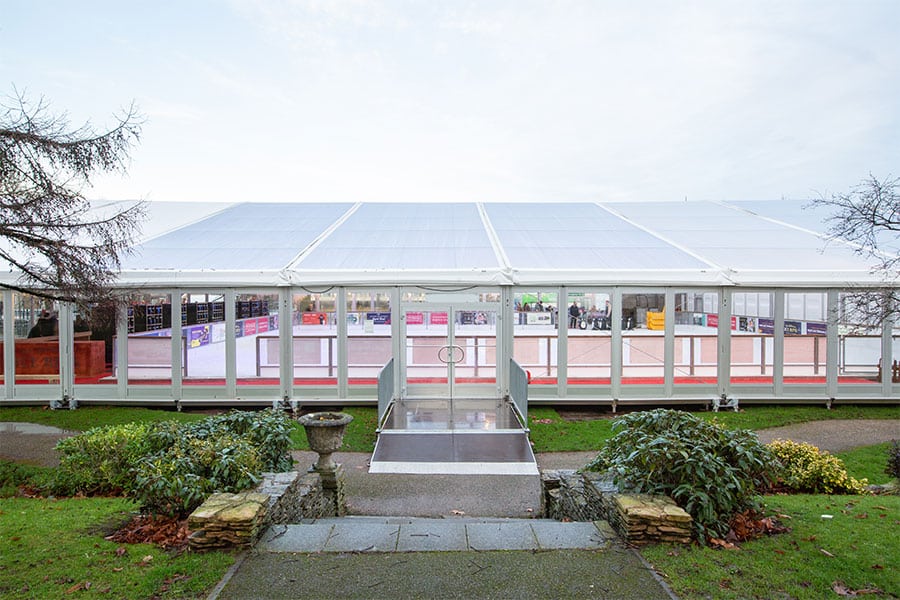 Due to health and safety reasons of the event there was a 5m x 10m welfare/treatment structure, beside the main ice rink structure, to provide storage and space right next to the main structure.