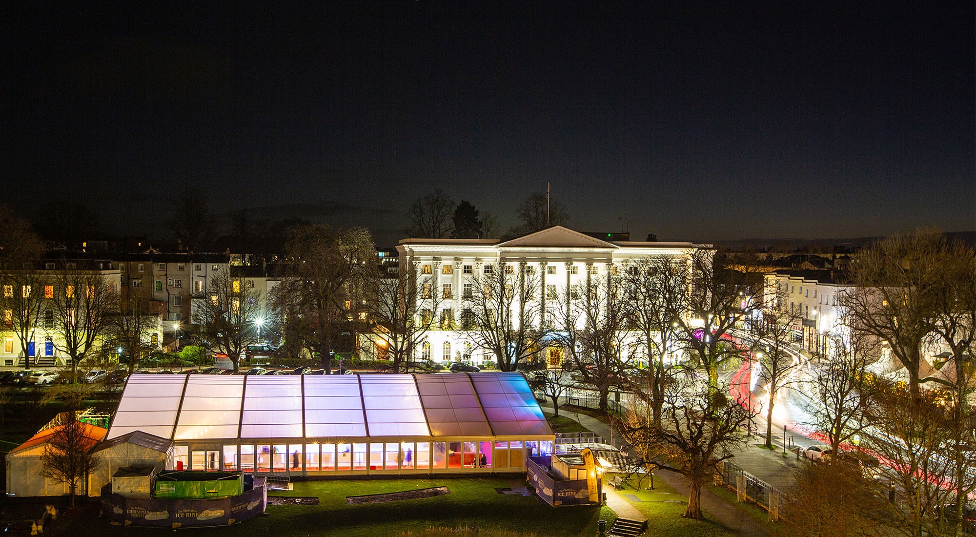We were approached by S3K group to provide a festive ice rink right in the heart of the Cheltenham this Christmas. Fews constructed an effective structure to house a temporary ice rink which incorporated a festive atmosphere within. The 25m x 35m structure included a curved clear PVC roof which created a snow globe effect to the ice rink, enticing anyone passing by to come and join in the ice skating fun.