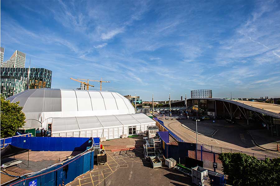 The organisers invited Fews Marquees, for the second year running, to provide a solution to house their Kidsong area, a space partitioned by age group, where the children of delegates could safely play and perform throughout the conference, within the 02 quadrant. Also for consideration was the need to ensure the structures provided were in harmony with the 02 itself.