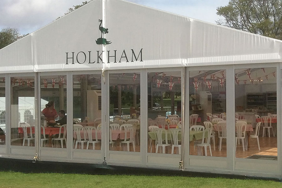 In 2015 Fews Marquees were recommended to Holkham Hall to provide a temporary solution for their visitor cafe, admission area and retail shop, whilst renovations were completed on their existing visitor centre. It was agreed that a semi-permanent structure was required.