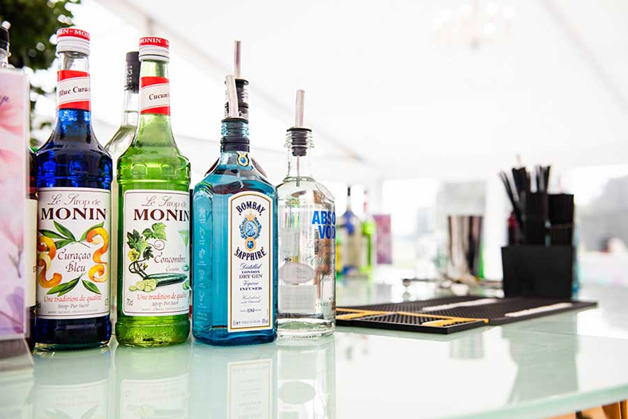 The main marquee was 15m x 40m, and the entrance marquee 15m x 20m, both Clearspan Premium Structures with a curved PVC roof. The interior was tastefully decorated by Diamond Weddings with flowers supplied by Timo Bolte.