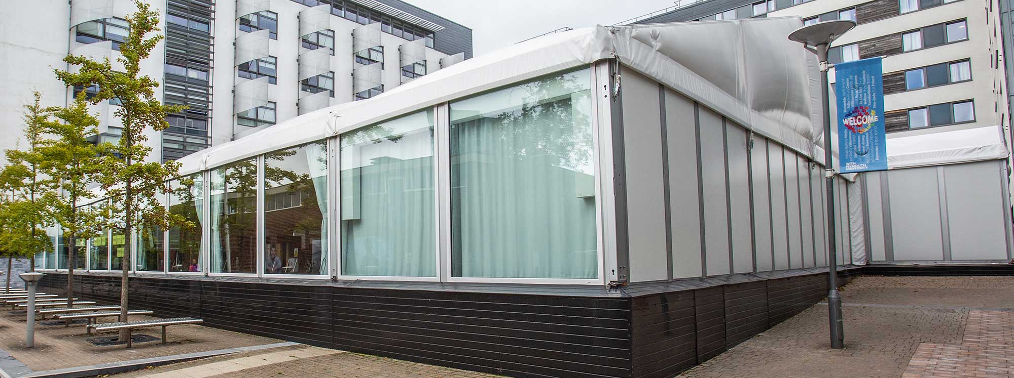 We have a strong relationship with many academic institutions, and as a result Plymouth University approached us to provide them with a temporary structure to use as an examination room, classroom and also as an event space. As a long term hire, we needed to ensure that the solution was suitable to be in place for up to, and potentially beyond, five years. The space for the structure was quite limited and presented some challenges in terms of access and build.