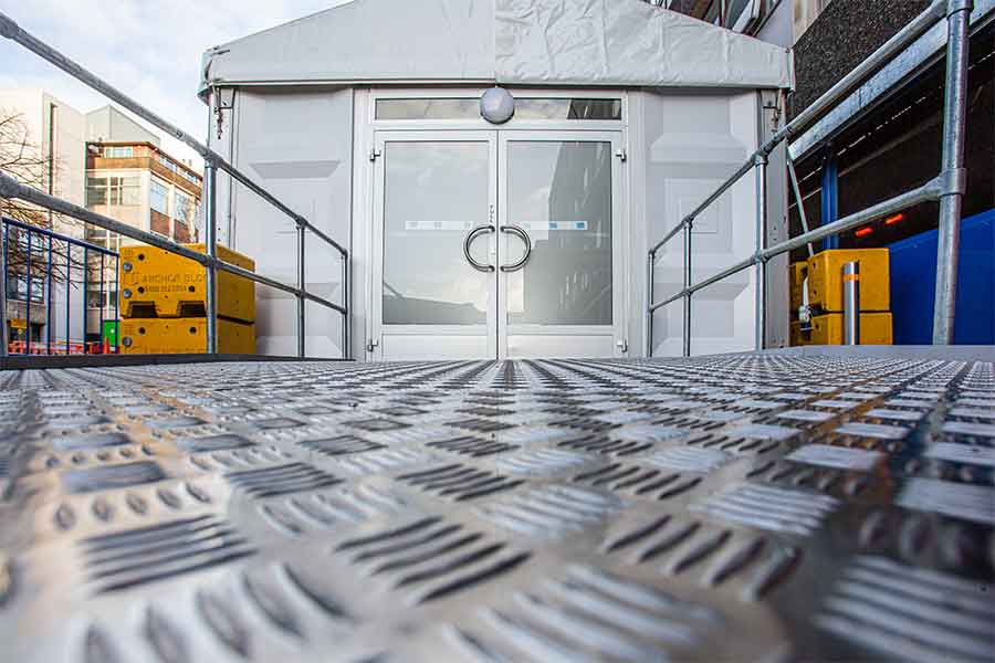Temporary A&E entrance structure including access ramp