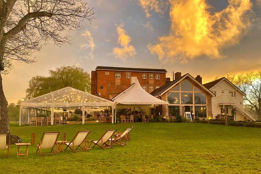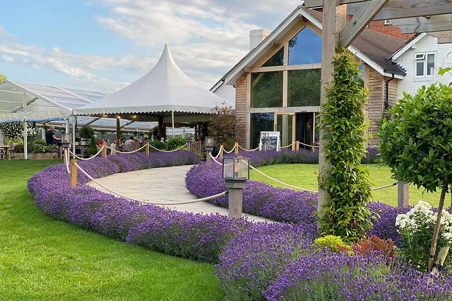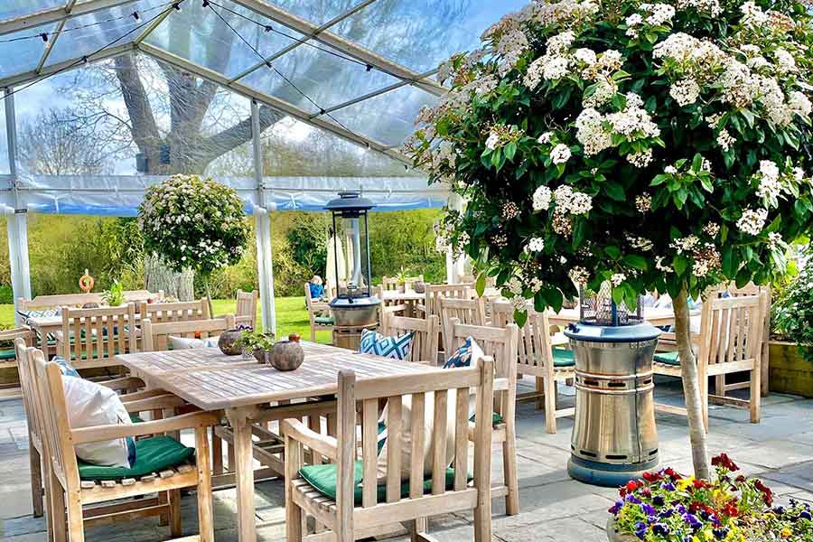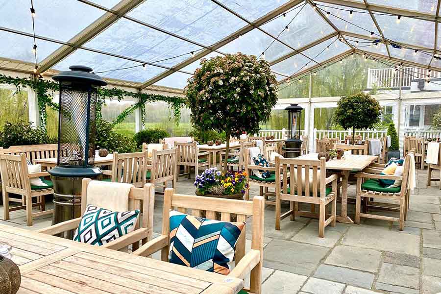 To achieve the extra space required in response to the pandemic, Fews were invited to build a restaurant extension marquee on the stone terrace adjacent to the main building.