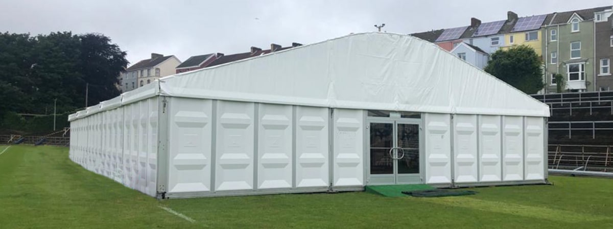 Marquees and tents can be an ideal solution for this problem. Fews can provide marquees from 3m to 25m wide and almost any length, meaning any outdoor space can be utilised. Ventilation and good airflow can be easily achieved inside a marquee, and many non-porous flooring types are available including commercial grade vinyl flooring that we typically use.