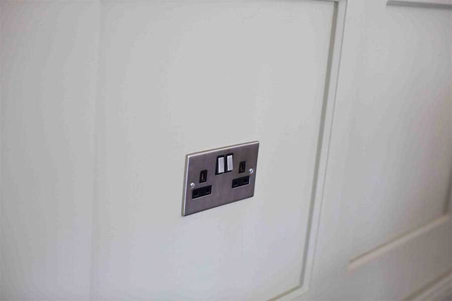 A new wiring system was installed which gave access to 13amp and 3 phase sockets built into the boxed legs, plus hidden speaker wiring and audio system.