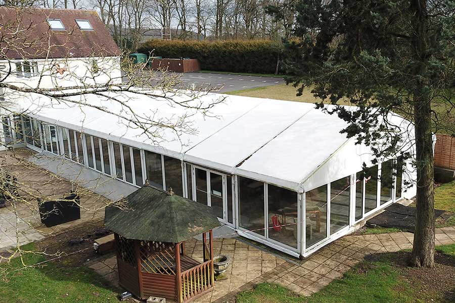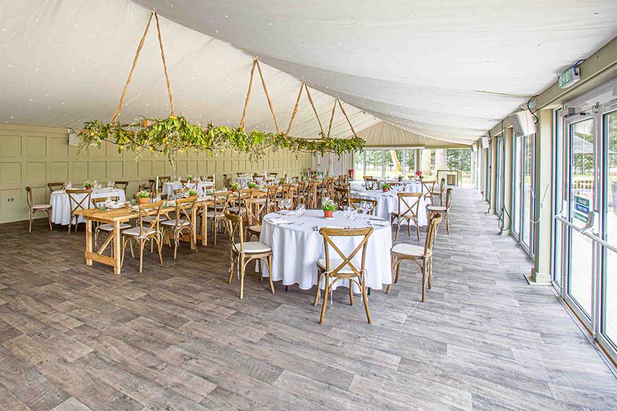 Refurbishment of the marquee at Hogarths Hotel, Solihull was a comprehensive and detailed project which entailed a lot of planning and only the original frame was left intact. The original roof was removed and replaced with a double-skinned PVC cover to eliminate condensation, and the flooring was replaced with a hard-wearing, attractive vinyl floor.