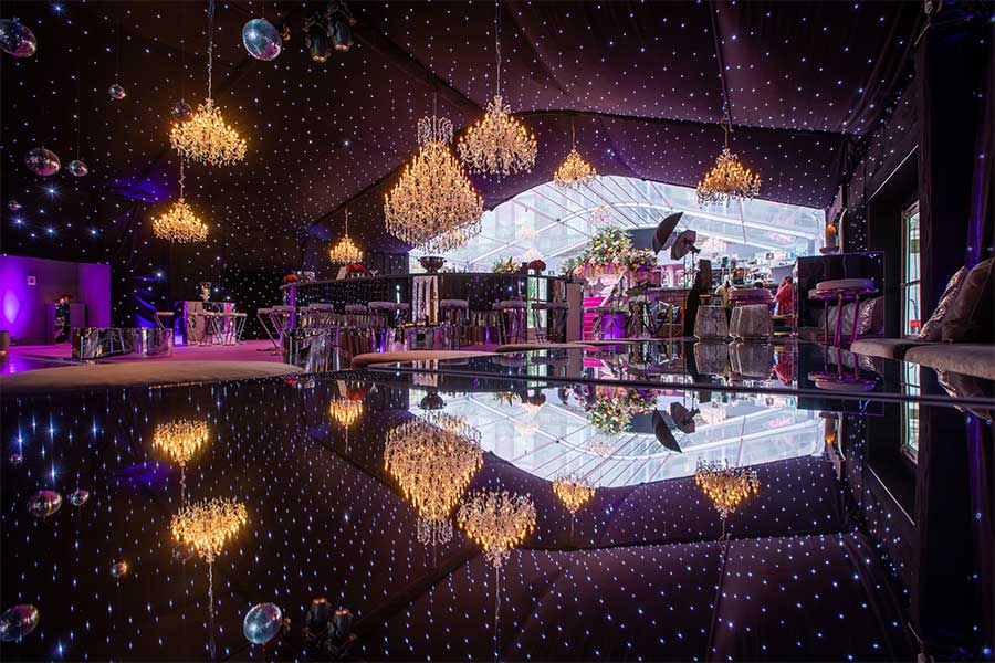 Our bespoke décor options can complete the look and take your wedding marquee to another level. Options include clear roofs, specialist linings, pretty festoon lighting, branded feature areas and decorative furniture.