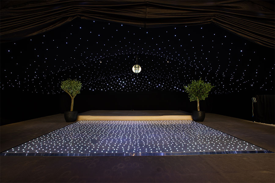 The eye catching features of this stunning space were the split level leading to the amazing bar provided by Liquid Bars, the dancefloor and star-cloth linings and overall interior layout by Oasis Events.